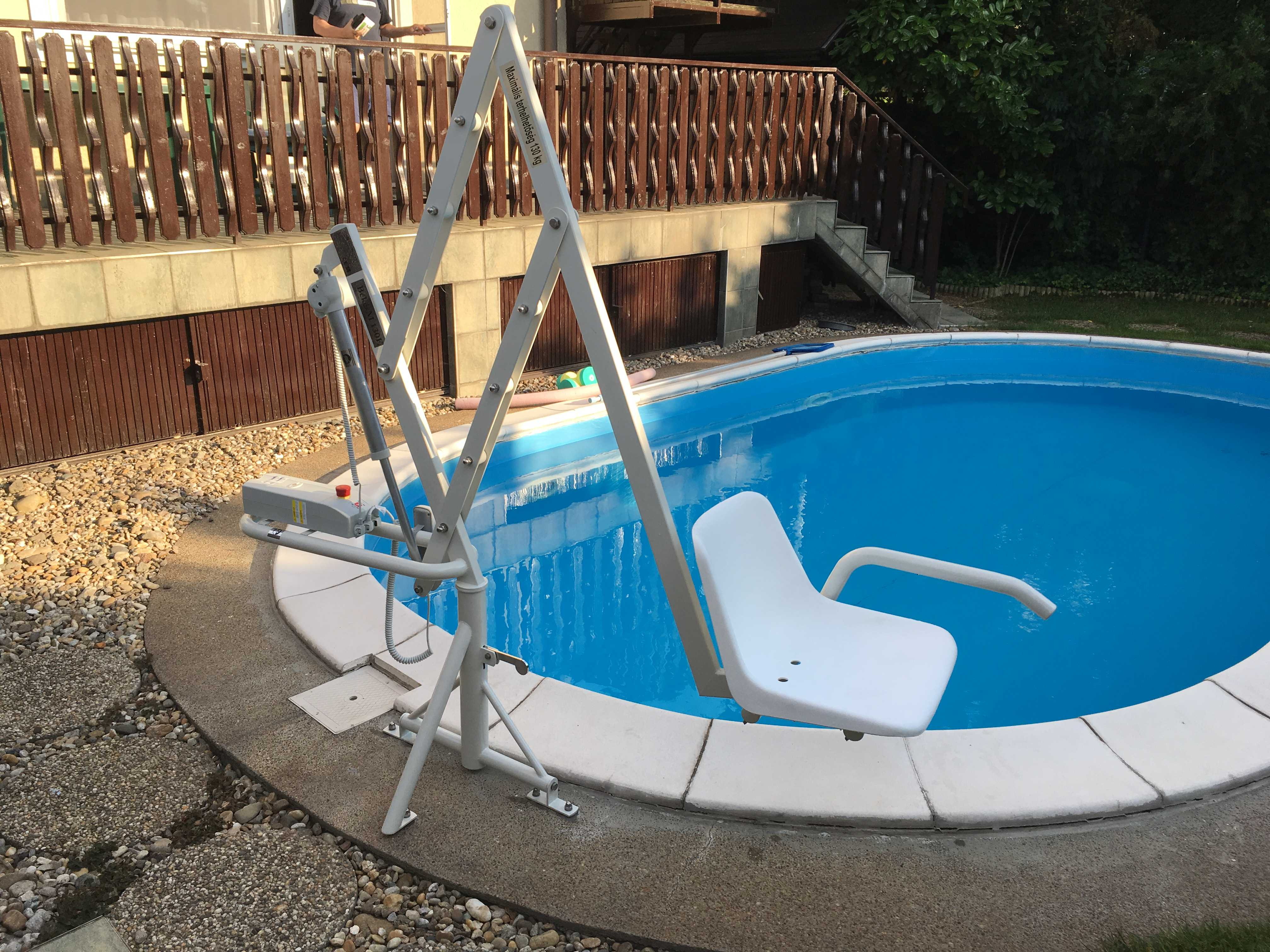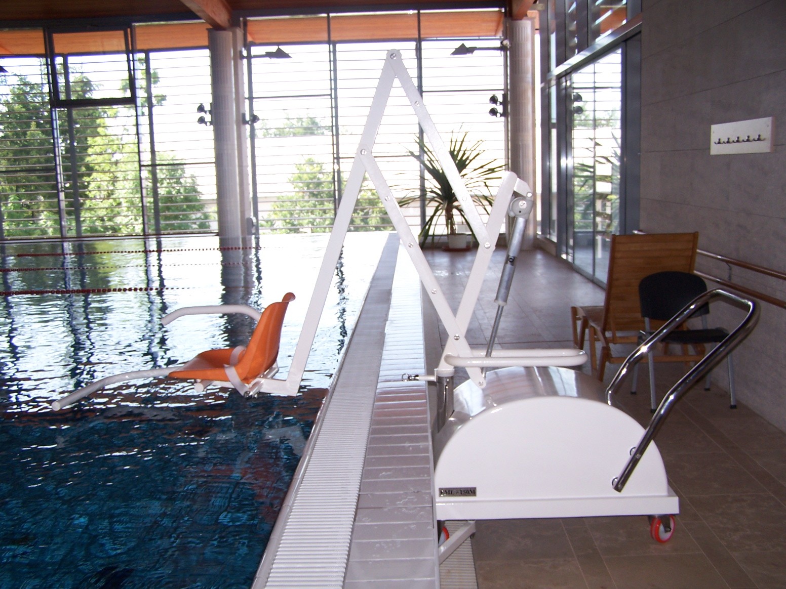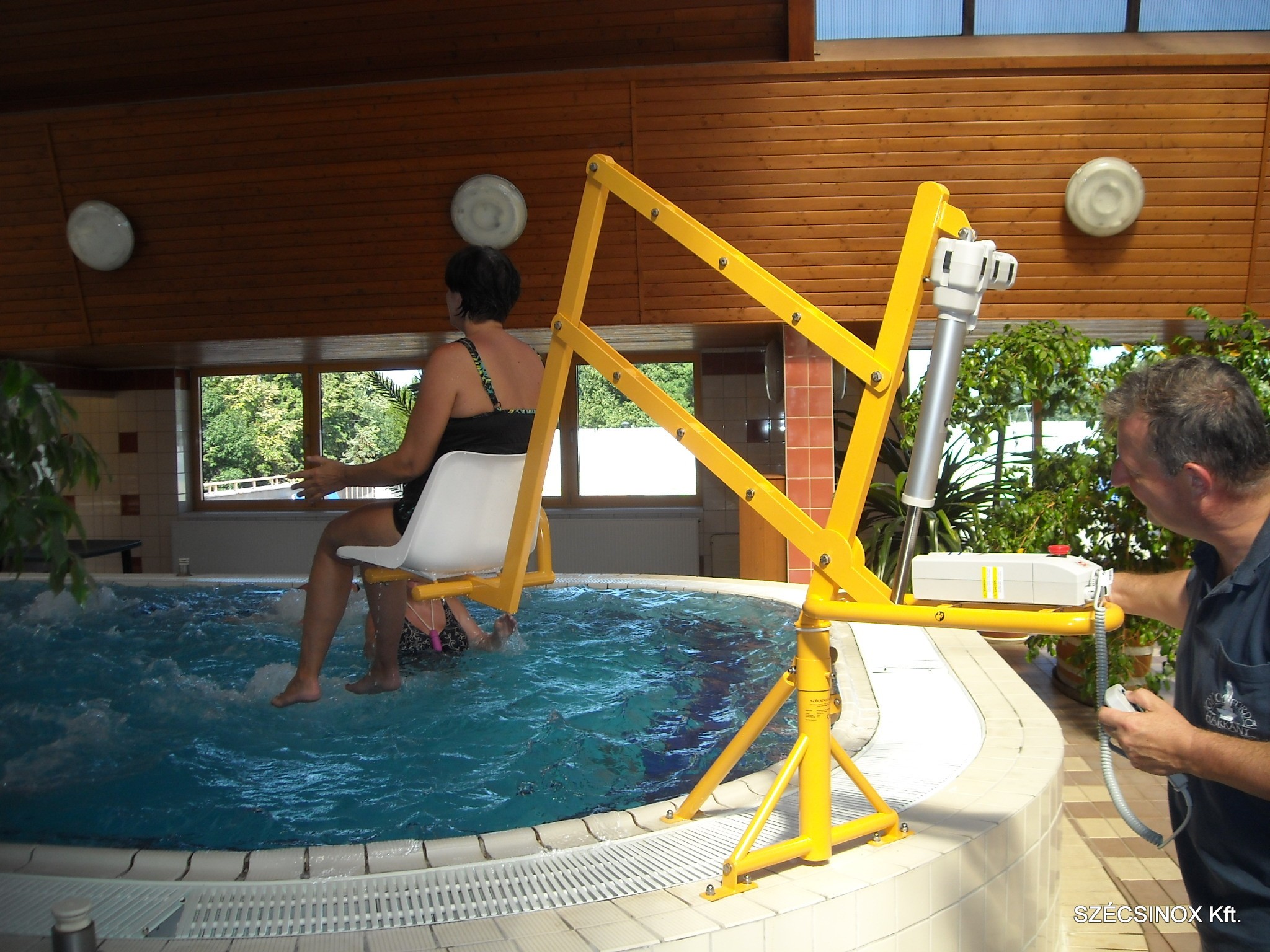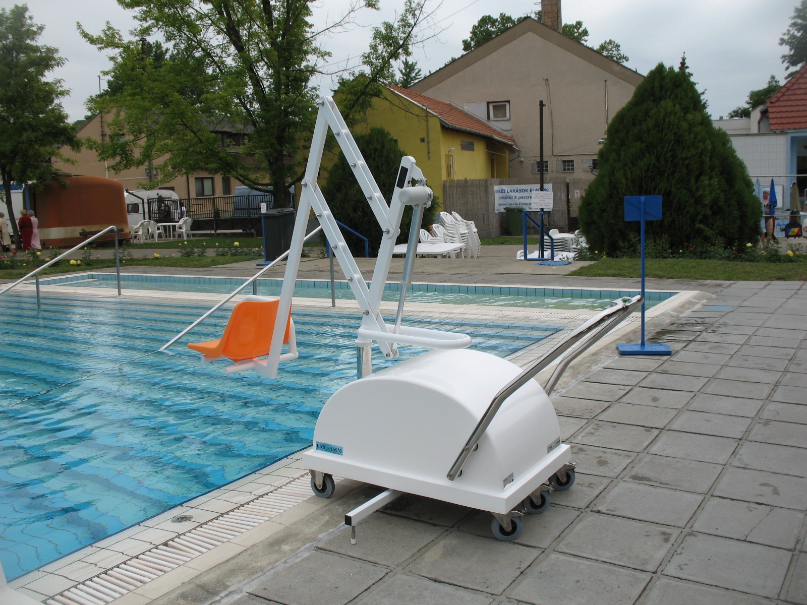 Akkumulátorról működő, a burkolathoz rögzítést nem igénylő, mobil medencelift. A készülék – opcionális felszereléssel - a vendég által segítség nélkül is üzemeltethető.