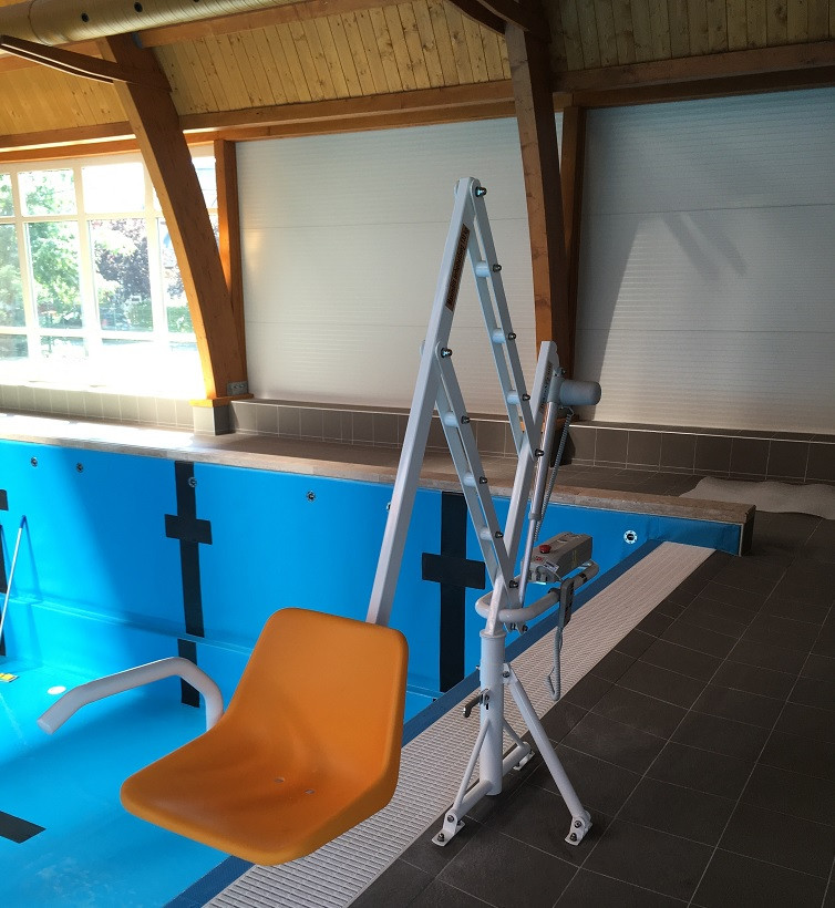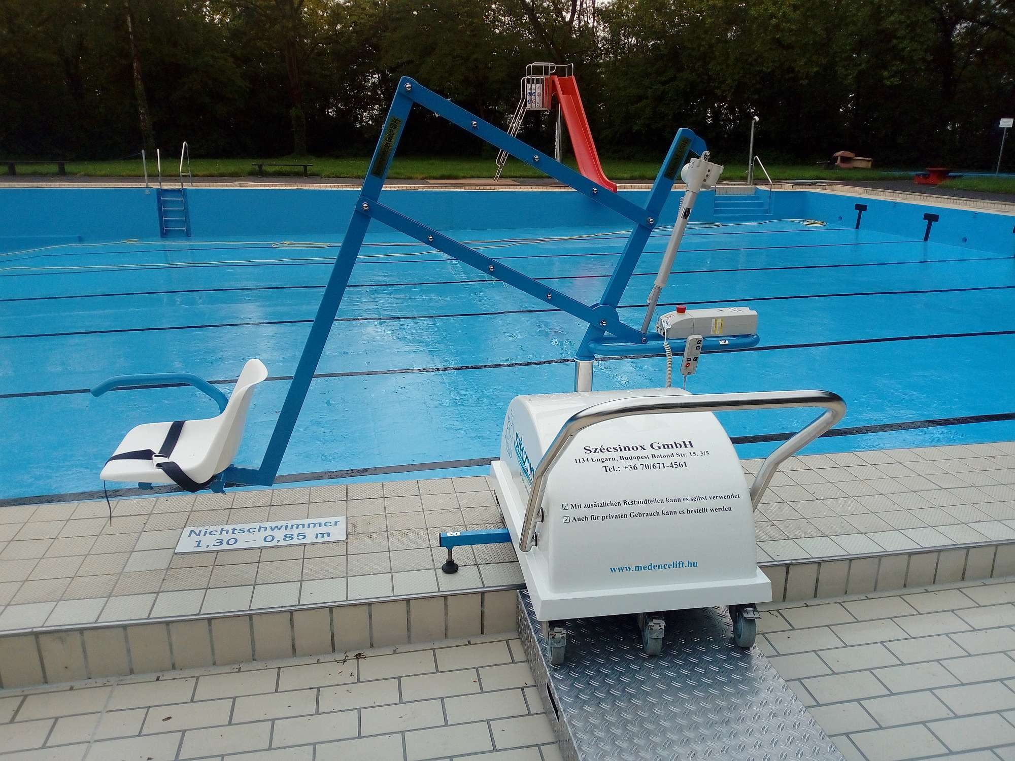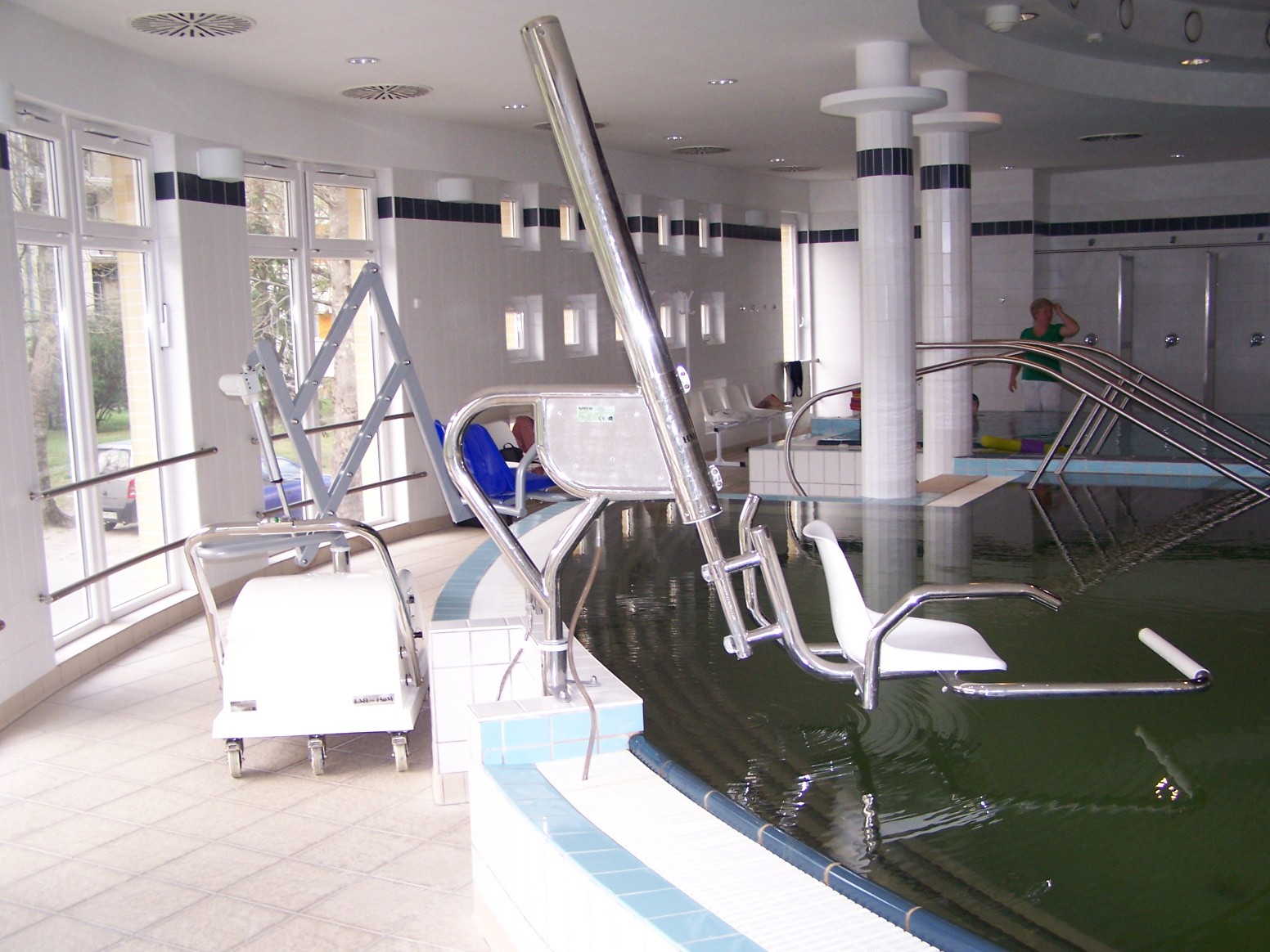 Akkumulátorról működő, a burkolathoz rögzítést nem igénylő, mobil medencelift. A készülék – opcionális felszereléssel - a vendég által segítség nélkül is üzemeltethető.