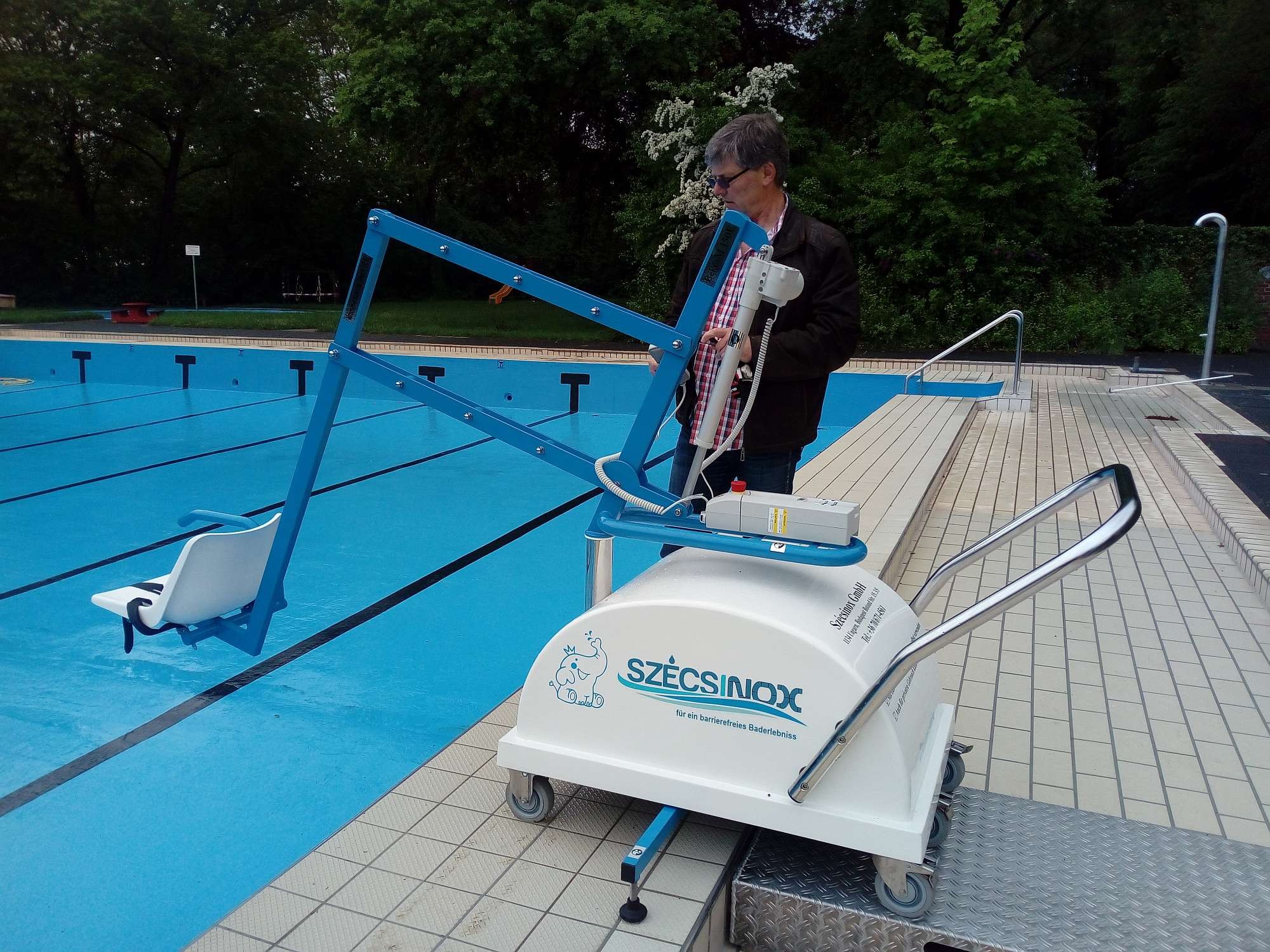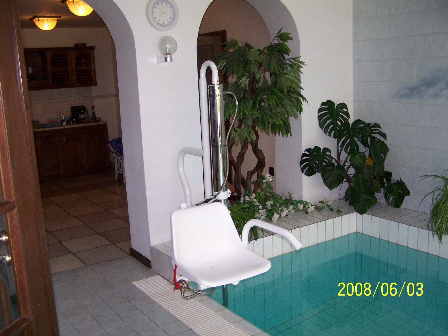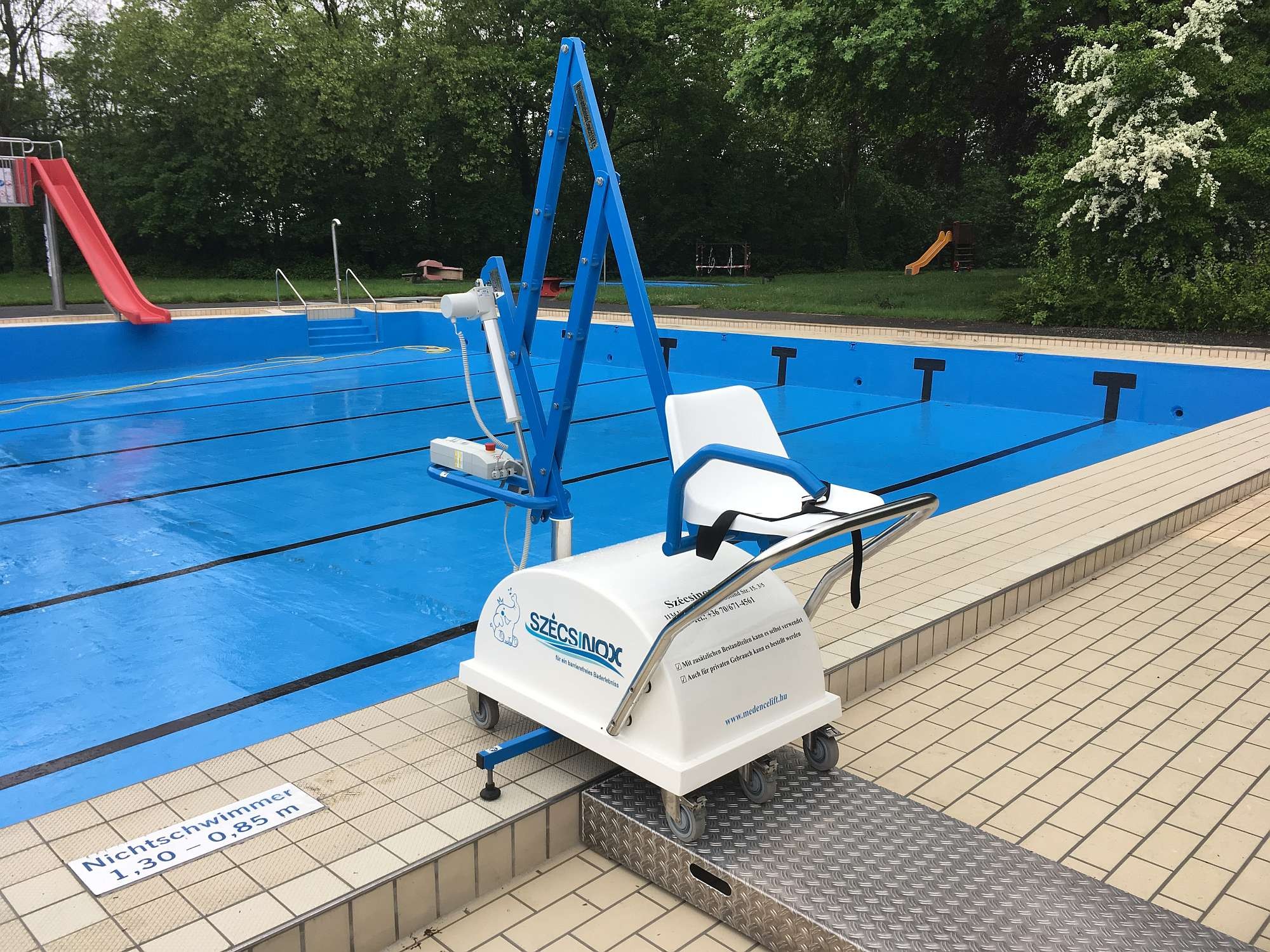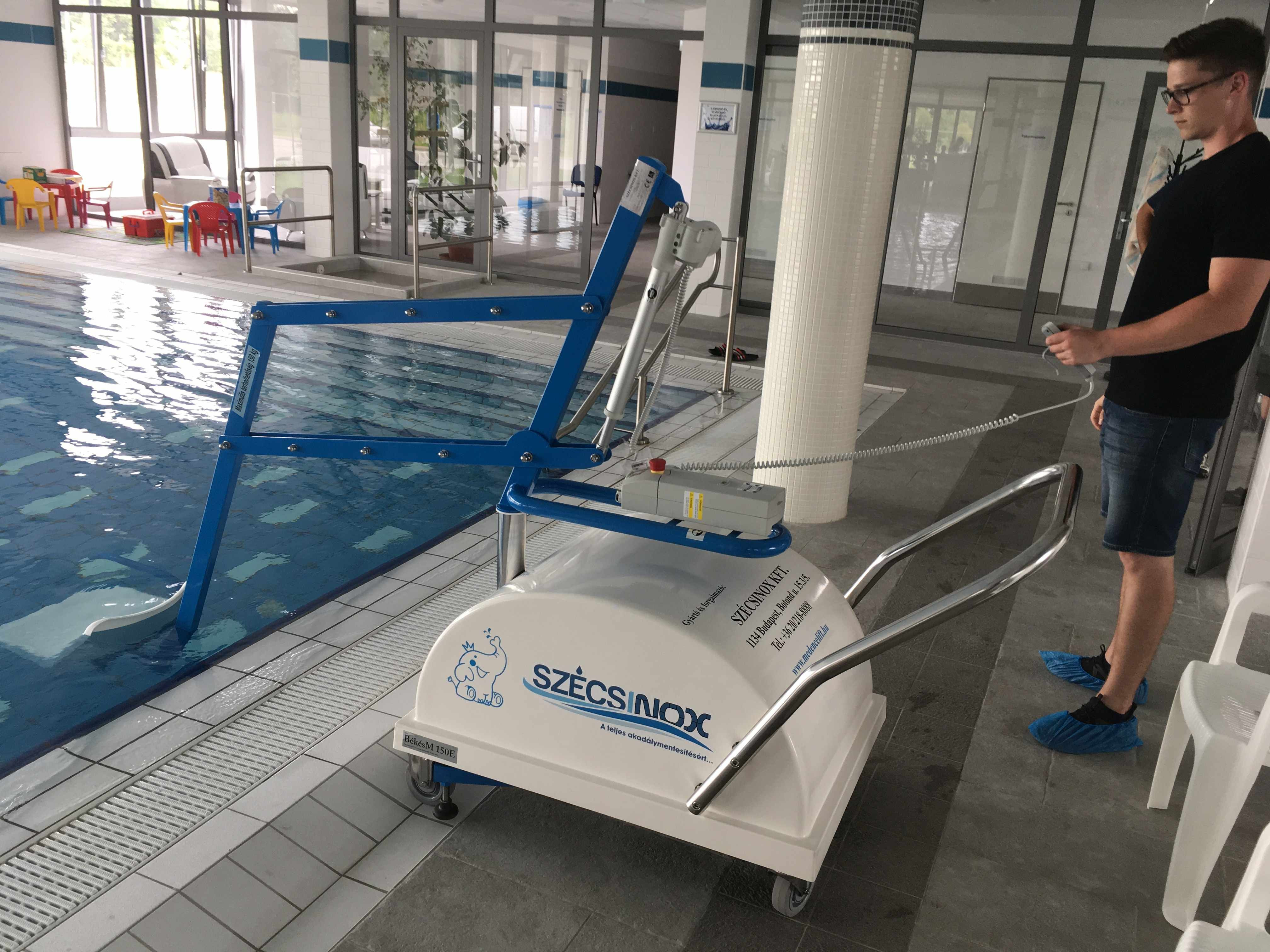 Akkumulátorról működő, a burkolathoz rögzítést nem igénylő, mobil medencelift. A készülék – opcionális felszereléssel - a vendég által segítség nélkül is üzemeltethető.