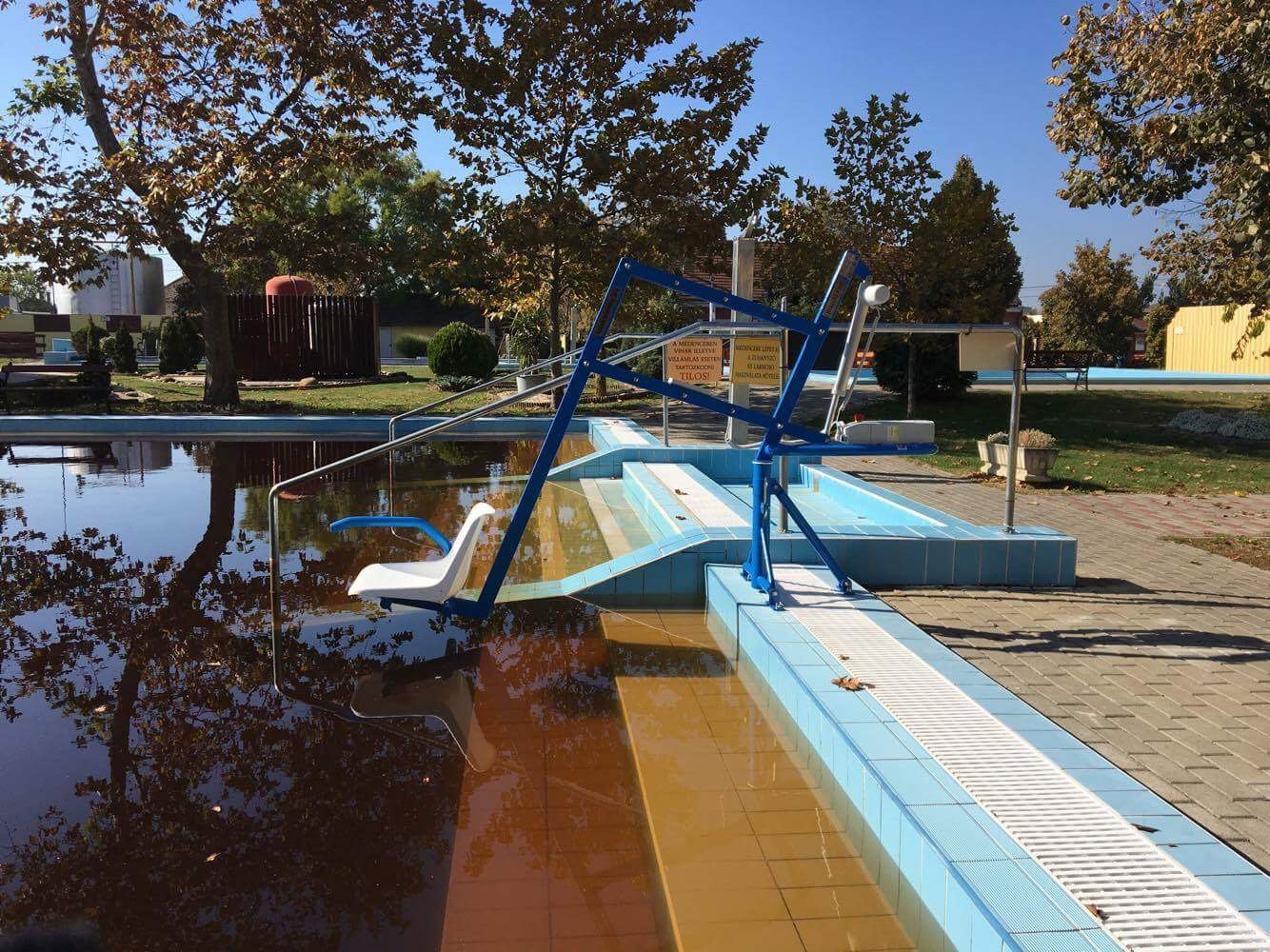 Akkumulátorról működő, helyszínre gyártott, oldható módon rögzített tartókból működő medencelift.